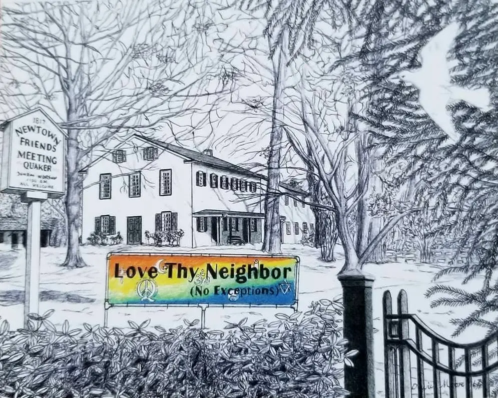 Newtown Quaker Meeting was co-founded in 1815 by Quaker artist Edward Hicks who painted over sixty versions of his well-known “Peaceable Kingdom.” Sunday School with classes for all are held during the academic year at 9:45 a.m. with worship following at 11:00 a.m. All are welcome.
